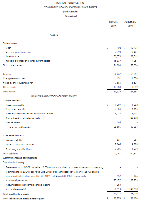 CYPRESS, CA / ACCESSWIRE / July 8, 2021 / KushCo Holdings, Inc. (OTCQX:KSHB) (“KushCo” or the “Company”), a premier provider of ancillary products and services to the legal cannabis and CBD industries, today reported financial results for its fiscal third quarter ended May 31, 2021.