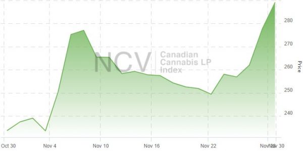 While the Canadian Cannabis LP Index continued to lag the broader sector, it posted strong gains in November as it increased 23.6% to 288.97: