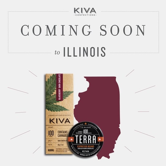 Kiva’s original confection are brought to Illinois in 100mg bars available in three flavors: Dark Chocolate Blackberry, Milk Chocolate Mint Irish Cream and Milk Chocolate Vanilla Chai.