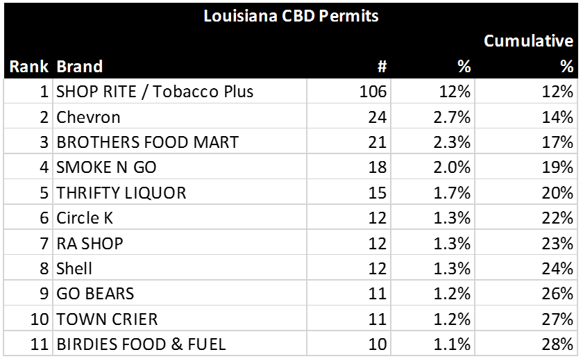 Quietly this summer, Louisiana’s Office of Alcohol and Tobacco Control issued 903 CBD permits to vendors all over the state. While many states have jumped onto the hemp bandwagon with the 2018 Farm Bill, Louisiana, from what we can tell, is the first to issue these kinds of licenses. We think this represents a big turning point in the industry as to how “retailing” may play out with CBD and Cannabis.