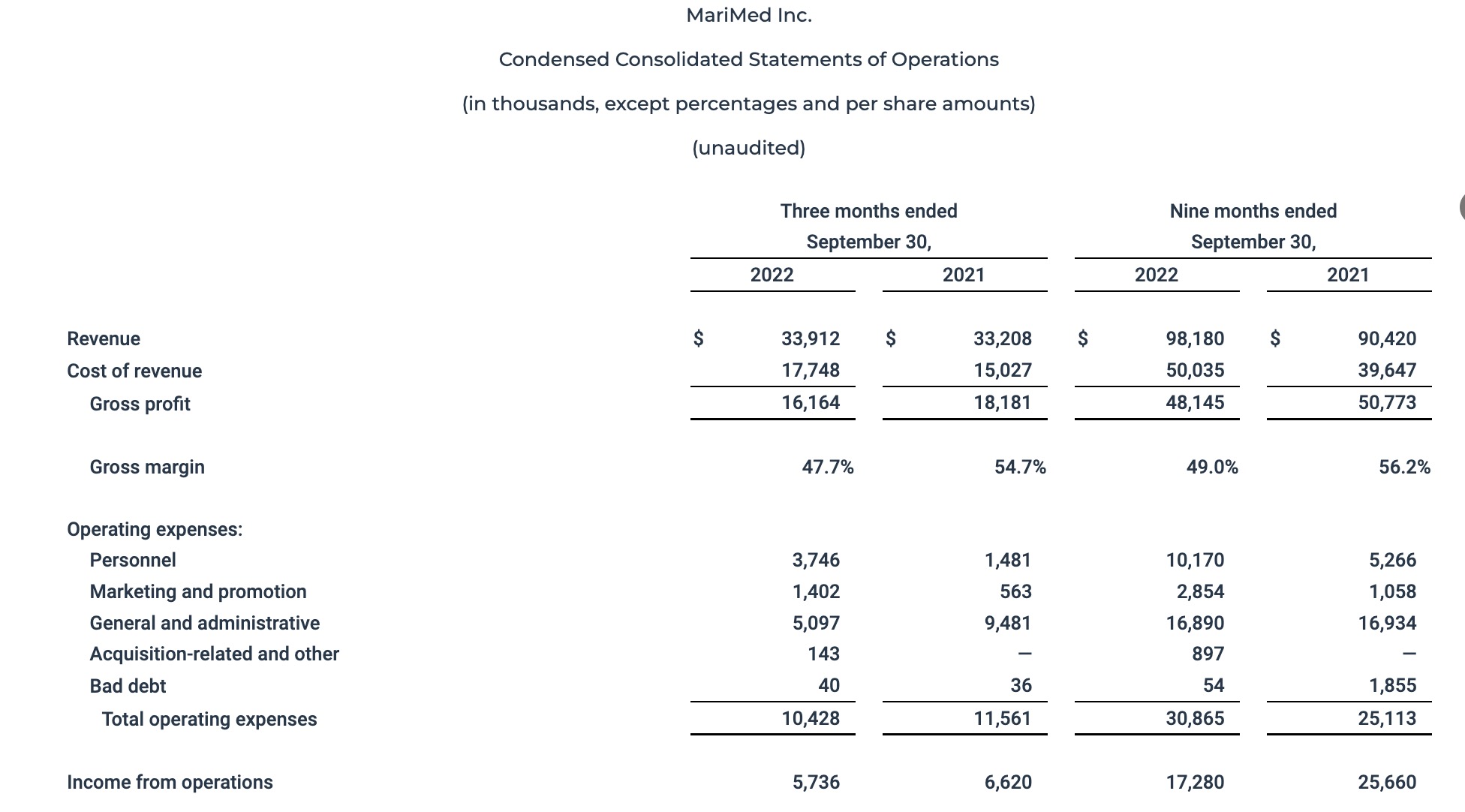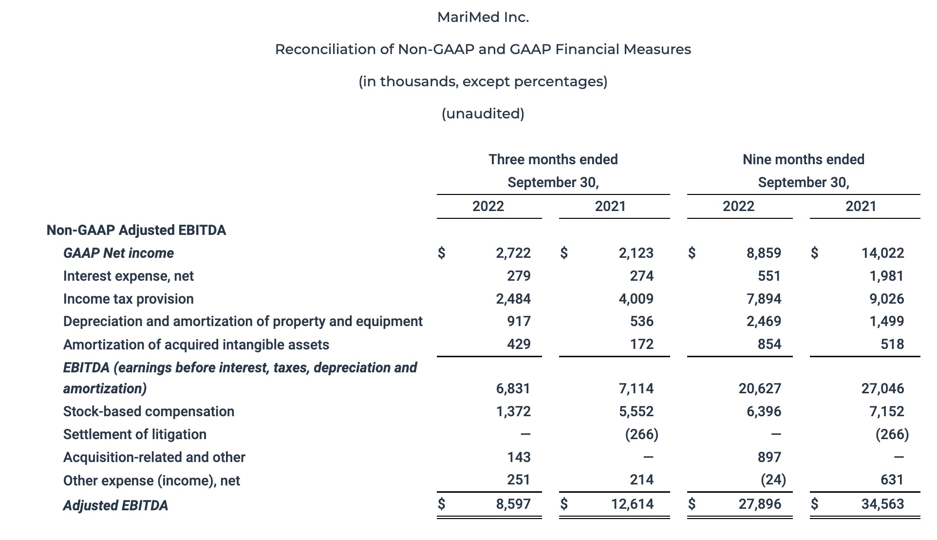 “Our financial results remain some of the best in the industry, as we have improved gross margins and delivered positive adjusted EBITDA for the eleventh consecutive quarter,” said Susan Villare, Chief Financial Officer. “Our ability to generate positive cash flow from operations in this challenging macro environment is a testament to the outstanding asset base that MariMed has developed and maintained.”