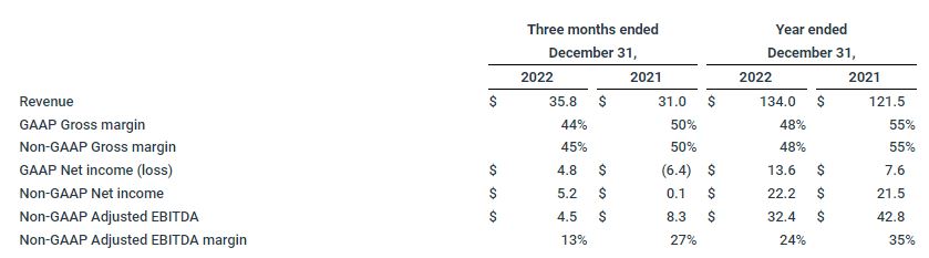 The following table summarizes the consolidated financial highlights for the three months and full years ended December 31, 2022 and 2021 (in millions, except percentage amounts):