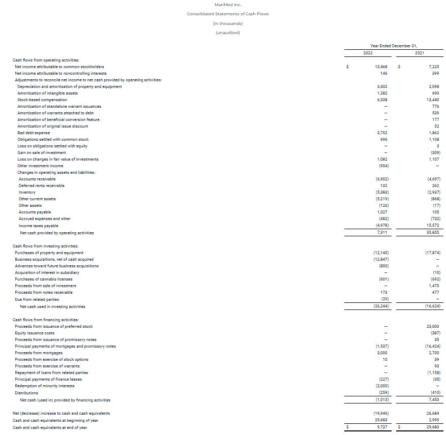 In 2022, we reported double-digit revenue growth for the fifth consecutive year, and positive Non-GAAP Adjusted EBITDA for the twelfth consecutive quarter. MariMed remains one of the only MSOs with both positive net income and cash flow from operations.