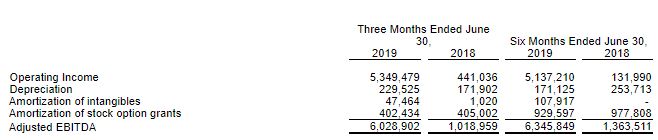 Revenues for the second quarter of 2019 were $25.7 million, up 774% compared to $2.9 million in the same year-ago quarter. The increase in revenue was primarily the result of hemp seeds sales totaling $25.2 million dollars, of which $22.0 million was recognized in the quarter. The remaining revenue is expected to be recognized in the third and fourth quarters of 2019 upon payment from the buyer. Revenues excluding the hemp seed sales increased 24% to $3.7 million versus the year-ago quarter.