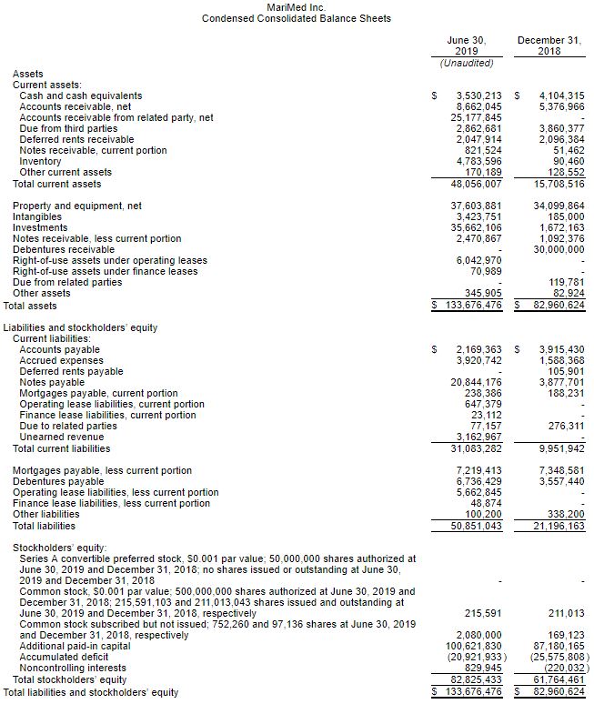 - MariMed acquired a minority interest in Terrace Inc., a Canadian-based operator focused on the acquisition and development of international cannabis assets in both Europe and South America. Terrace is in the process of becoming a public company traded on the Toronto Venture Exchange.