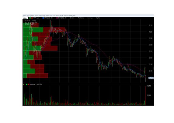 Following reports of the change in management on Monday afternoon, MassRoots stock plunged to an all-time low of $0.23 before closing at $0.29: