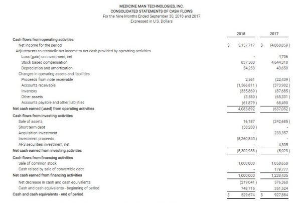DENVER, CO / ACCESSWIRE / November 8, 2018 / Medicine Man Technologies Inc. (OTCQB: MDCL) (“Medicine Man Technologies” or “Company”), one of the United States’ leading cannabis branding and consulting companies today provided financial results for the quarter ended September 30, 2018.