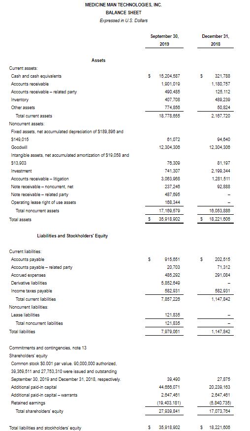 DENVER, Nov. 11, 2019 /PRNewswire/ — Medicine Man Technologies, Inc. (OTCQX: MDCL) (“Medicine Man Technologies” or the “Company”) today announced the financial results for its third quarter of 2019.