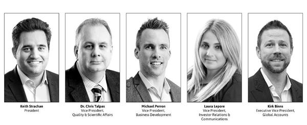 Dr. Chris Talpas is promoted to Vice President, Quality and Scientific Affairs; Michael Perron takes on the elevated role of Vice President, Business Development; and Laura Lepore, formerly of Home Capital Group Inc., has been brought on as Vice President, Investor Relations & Communications.