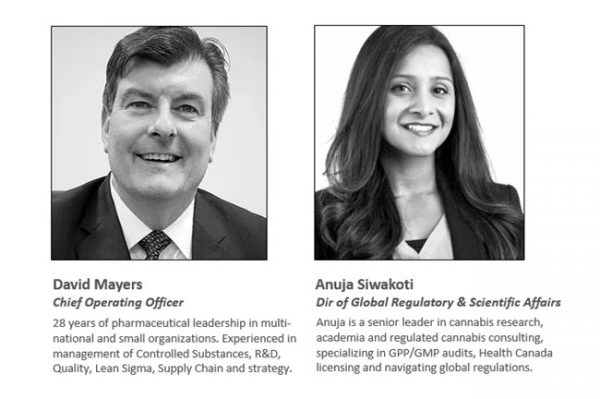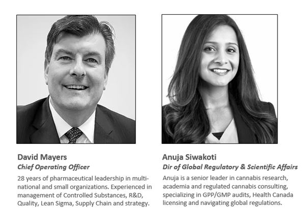 David and Anuja reflect the already high level of expertise and professionalism of our senior management team .Our vision of international leadership in pharma-quality cannabis concentrates and isolates requires this elevated standard of qualifications. We continue building strength to meet our goals.