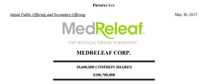 After initially filing its preliminary prospectus in April, ACMPR licensed producer MedReleaf (TSX: LEAF) has filed the final prospectus for its $100.7mm initial public offering and secondary offering, selling shares at $9.50 in a syndicate led by GMP Securities as the underwriter that also included Clarus Securities, Canaccord Genuity, Cowen and Company, Eight Capital and PI Financial. This is the second TSX IPO for a Canadian LP, with CanniMed Therapeutics (TSX: CMED) (OTC: CMMDF) having conducted its IPO in December. Canopy Growth (TSX: WEED) (OTC: TWMJF) and Aphria (TSX: APH) (OTC: APHQF) trade on the TSX along with the Horizons Medical Marijuana Life Sciences ETF (TSX: HMMJ) (OTC: HMLSF). The pricing was at the lower end of the $9.50-10.50 range shared earlier this month.