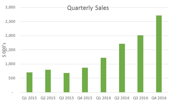 - Gross margin increased by 285% to $5,001,756 or 65% or sales, from $1,297,567 or 42 % of sales during fiscal 2016.