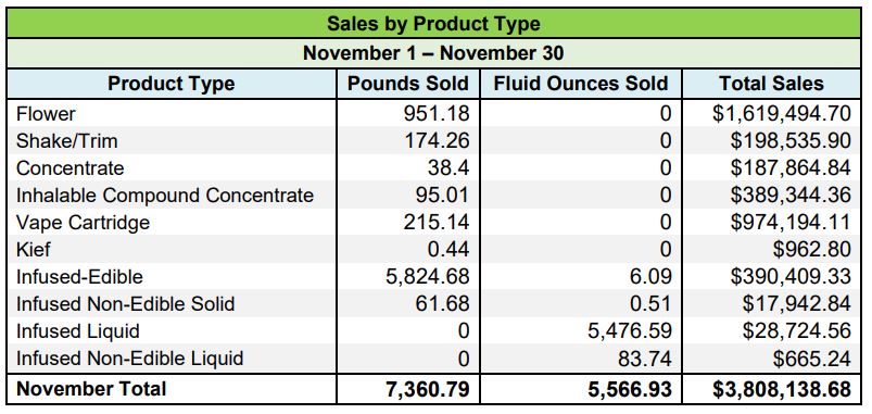The state breaks out sales by category and provides pricing detail by category, for both medical and adult-use: