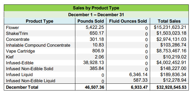 The state breaks out sales by category and provides pricing detail by category, for both medical and adult-use: