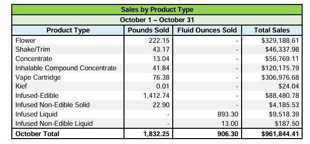 The state breaks out sales by category and provides pricing detail by category, for both medical and adult-use: