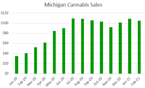 Michigan generated $985 million in cannabis sales in 2020, and the program should continue to expand this year as supply becomes more available and as distribution expands.