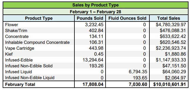 The state breaks out sales by category and provides pricing detail by category, for both medical and adult-use: