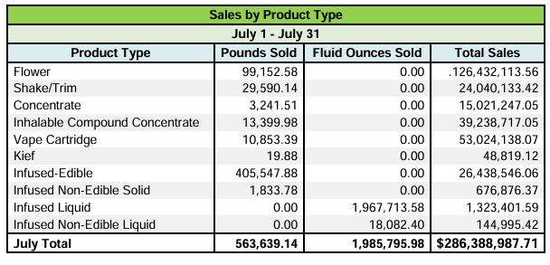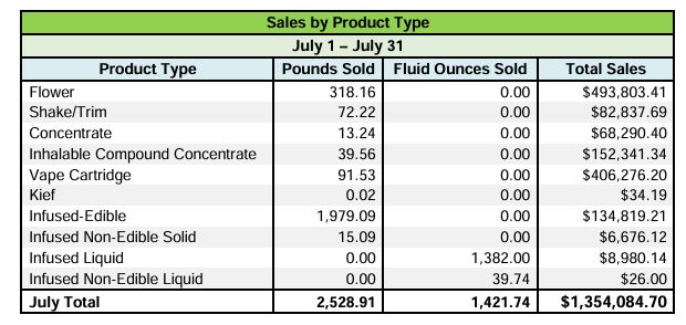 The state breaks out sales by category and provides pricing detail by category, for both medical and adult-use:
