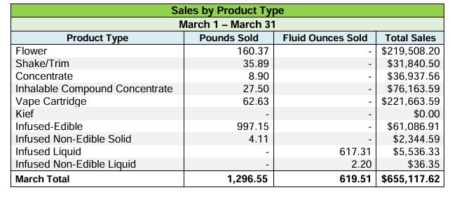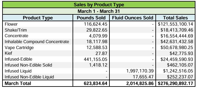 The state breaks out sales by category and provides pricing detail by category, for both medical and adult-use: