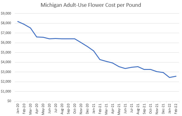 Following a January plunge in adult-use sales, Michigan cannabis sales in total gained 1.5% to $154.8 million in February, up 47% from a year ago: