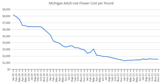 Michigan cannabis sales expanded 82.1% in 2021 to $1.79 billion and were up 27.9% in 2022 at $2.29 billion. In 2023, sales grew 33.3% to $3.06 billion. The program should continue to expand ahead as supply becomes more available and as distribution expands.