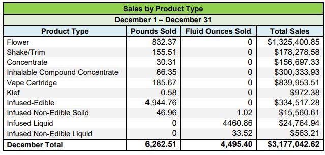 The state breaks out sales by category and provides pricing detail by category, for both medical and adult-use: