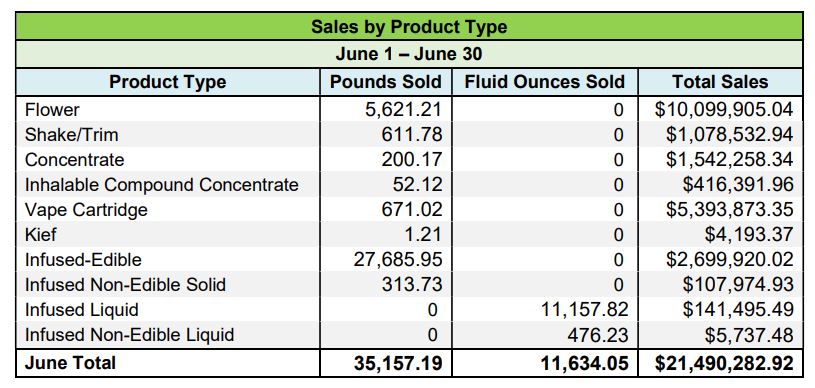 Michigan cannabis sales gained 0.5% compared to May despite having one less day and increased 26% year-over-year to $187.4 million in June: