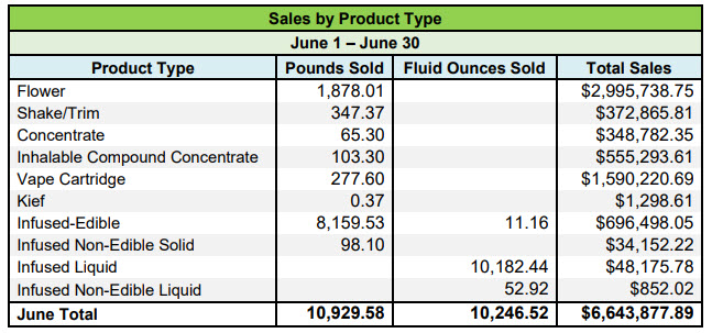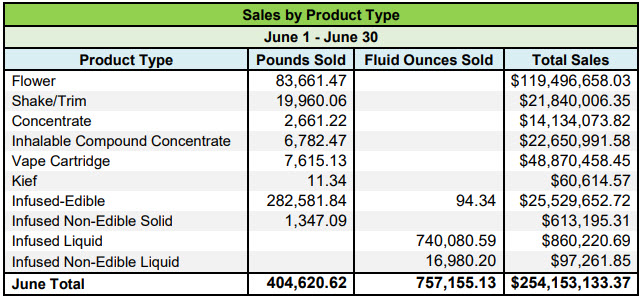 The state breaks out sales by category and provides pricing detail by category, for both medical and adult-use: