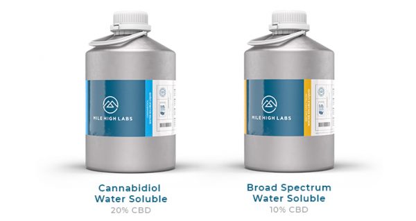 Mile High Labs Water Soluble Liquids are available in two forms: cannabidiol isolate and broad-spectrum distillate. The isolate version contains a concentration of 20% CBD and no other cannabinoids. Broad-spectrum is a concentration of 10% CBD with the inclusion of hemp terpenes and other cannabinoids to enhance a product’s flavor profile.