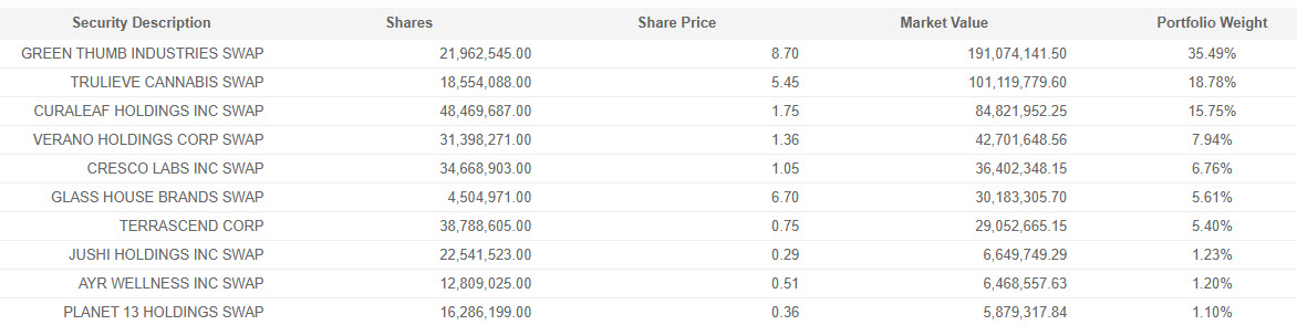 Looking at the ETF’s composition, it has 84.7% exposure to the five Tier 1 MSOs, which is tremendously higher than their share of the market by revenue or by market cap: