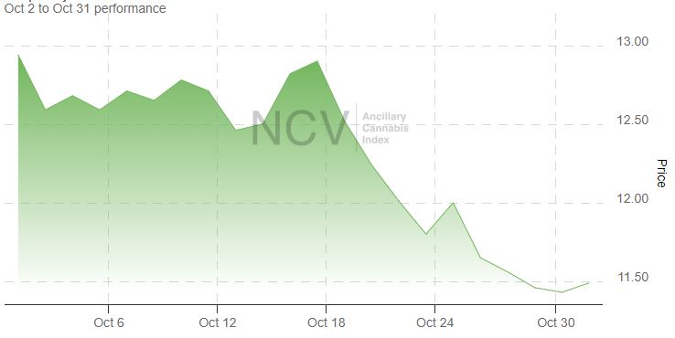 In this article, we summarize the performance of the other managed indices that New Cannabis Ventures offers to its readers. We discuss the performance of the American Cannabis Operator Index, Ancillary Cannabis Index and Canadian Cannabis LP Index. The one that was quite strong in August and in September led the way lower in October.