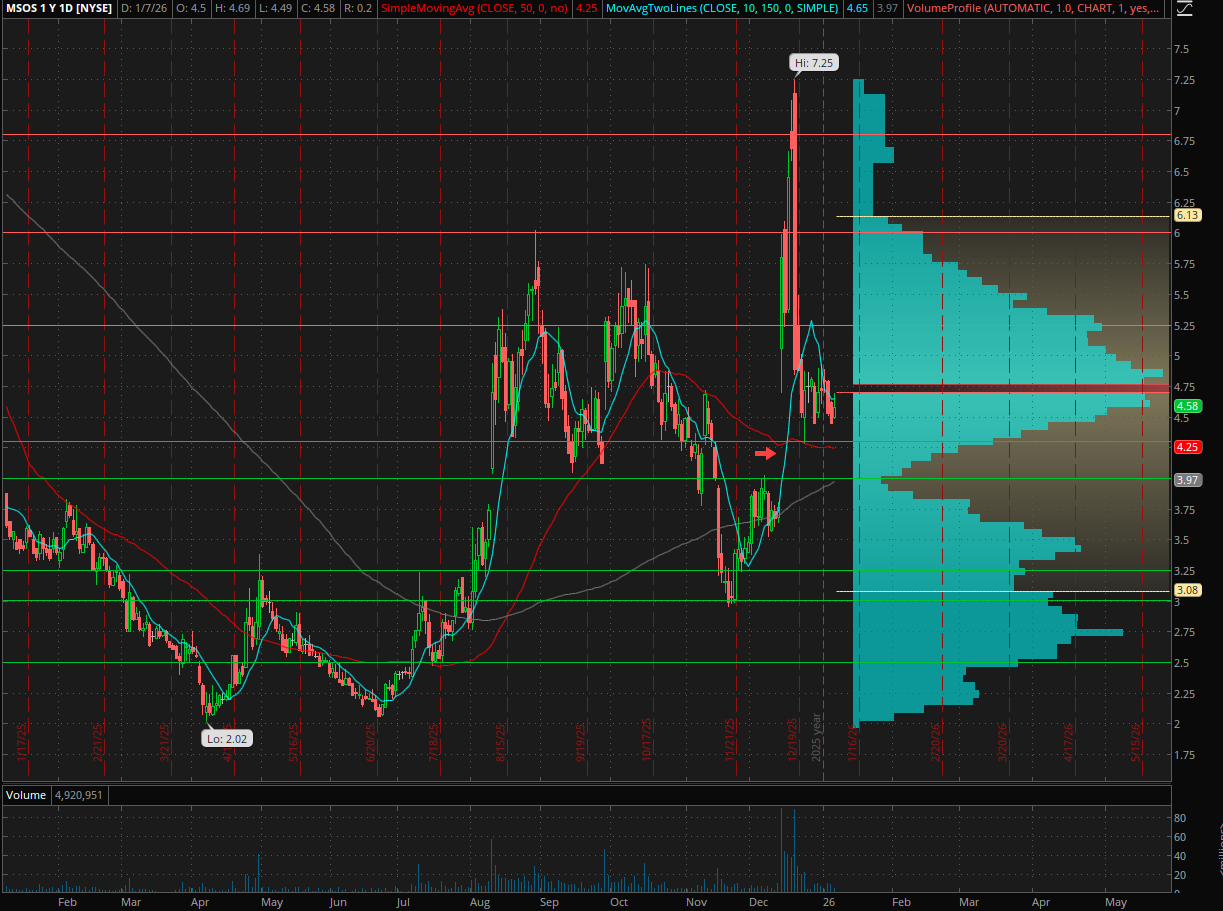 In 2026 so far, the Global Cannabis Stock Index is unchanged. MSOS, which shot up in December, has dropped 3.0% to $4.58. After the big run-up last year, investors aren’t likely too worried yet. Perhaps they shouldn’t be, as rescheduling is still on track, and, if it goes through, it is very bullish due to the elimination of 280E taxation. Of course, it remains unknown if rescheduling will actually take place and, if so, when it will take place.