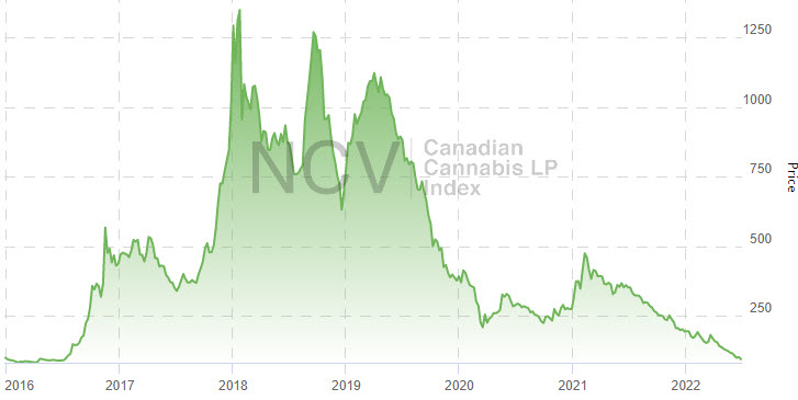 As we described in an earlier article, the Global Cannabis Stock Index closed in June at its worst level ever, falling 23.1% and moving to a drop of more than 55% in 2022. In this exclusive article we will summarize the performance of the other managed indices that New Cannabis Ventures offers to its readers. We will discuss the performance of the American Cannabis Operator Index, Ancillary Cannabis Index and Canadian Cannabis LP Index as well as Canadian Cannabis LP index Tier 1, 2 and 3.