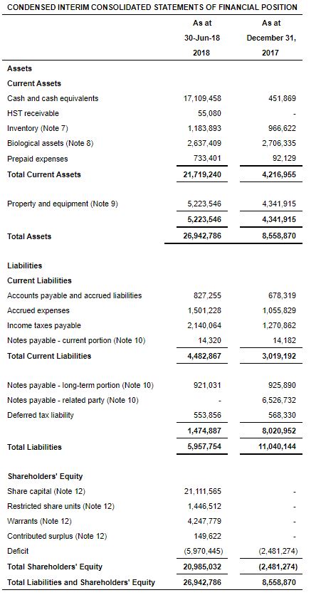 As at the date of this report, the Company had 62,008,400 common shares and 55,232,940 class A convertible, restricted voting shares issued and outstanding for a total of 117,241,340 shares outstanding. There were 820,000 options issued and outstanding of which 258,750 have fully vested. There were 17,214,795 warrants outstanding and 5,638,358 RSU’s outstanding of which 1,879,453 RSUs had fully vested as at June 30, 2018 and at the date of this report.