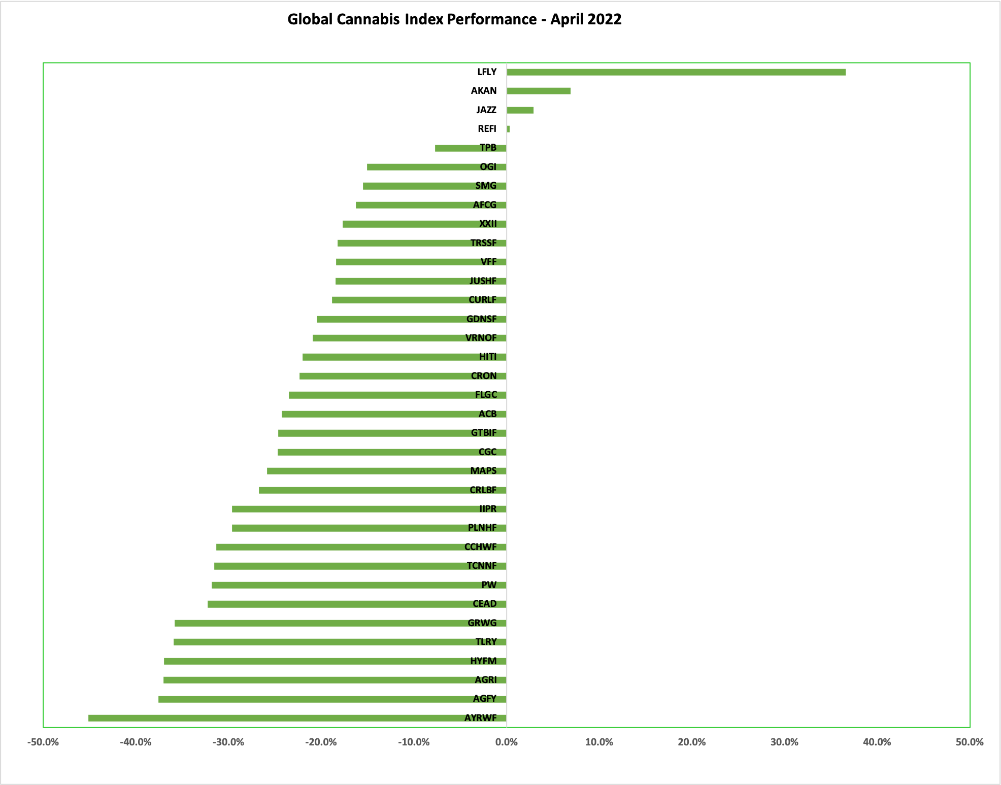 The Global Cannabis Stock Index has now declined 32.4% in 2022 from its year-end 2021 close of 32.85.