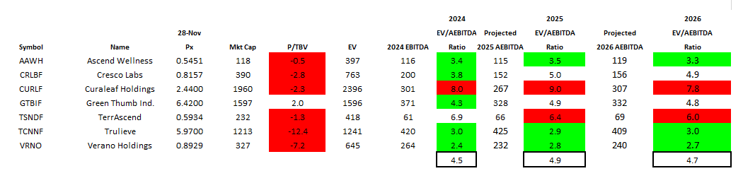 There wasn’t much cannabis business news this week, but what we learned was kind of surprising. Cannabist, which sold one of its Virginia businesses to Verano in 2024 for $90 million, announced the sale of its remaining Virginia assets to Curaleaf. The Cannabist press release revealed the price, while the Curaleaf one did not. Cannabist gapped up and sold off and is now down 13.9% this week and down 39.9% year-to-date. The company is extremely challenged, in my view, and does not really matter much to investors given its low market cap and thin trading volumes. It’s the debt-holders that care.