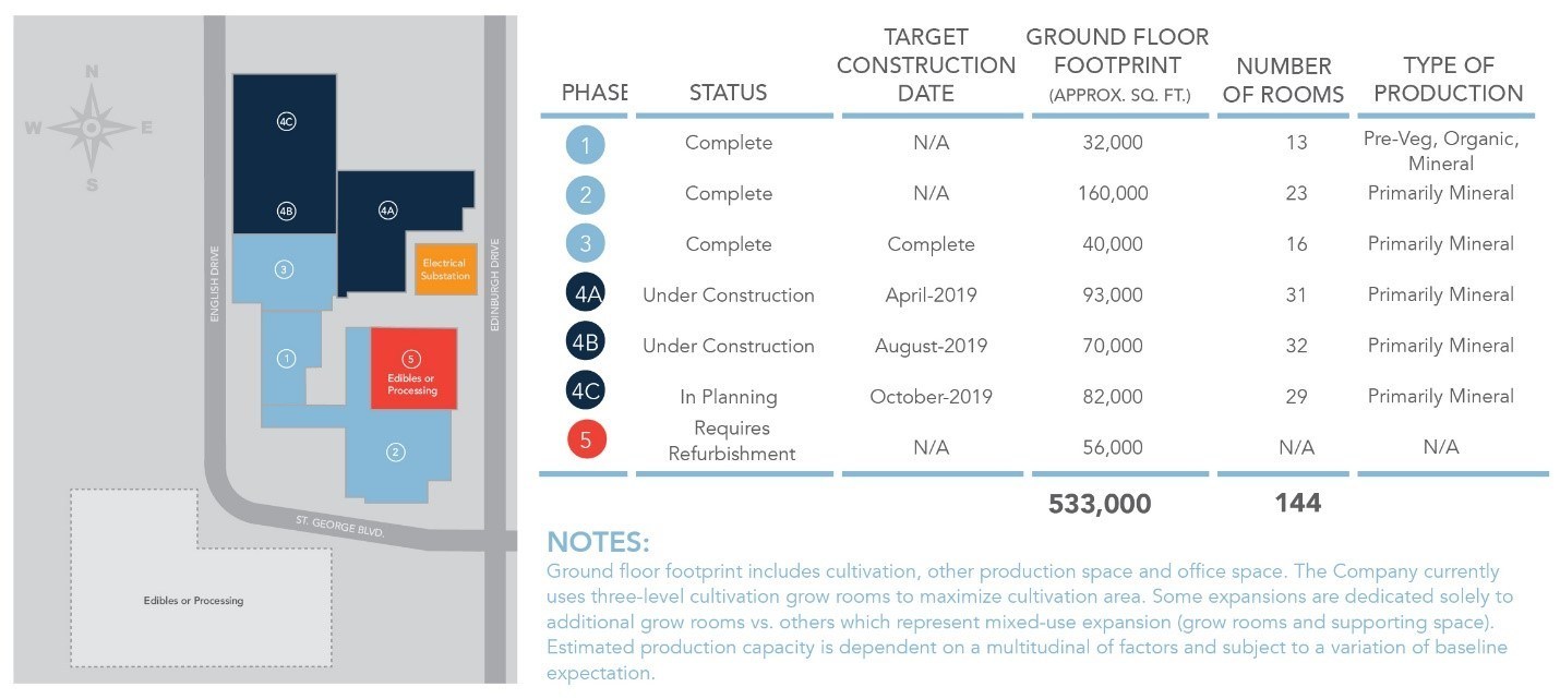 Currently, construction continues as planned on Phase 4A and 4B of the Company’s expansion. This expansion will continue to increase Organigram’s production capacity with the additional state-of-the-art grow rooms coming online in April 2019 (Phase 4A) and August 2019 (Phase 4B) increasing the Company’s target production capacity to 62,00 kg/yr and 89,000 kg/yr, respectively.