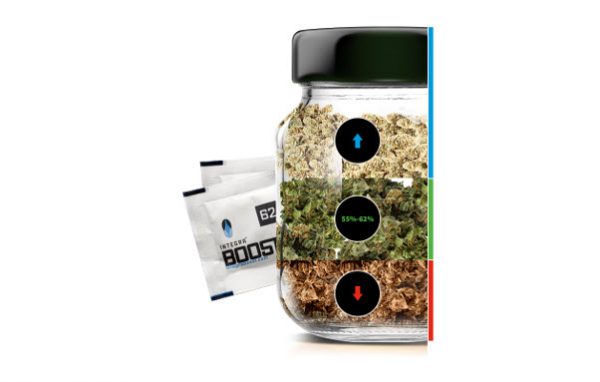 Integra Boost packs comprise a glycerin gel and 2-way membrane to create a patented humidity control technology, either releasing or absorbing moisture as needed to ensure the optimal environment for storing cannabis. Long used to help protect, for example, the freshness of food and pharmaceuticals, the technology maintains relative humidity at 62 per cent in a contained environment. This consistency helps preserve the product’s color, taste, structural integrity and weight.