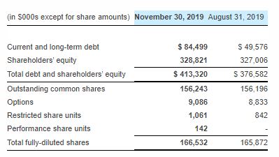 - On November 22, 2019, the Company filed a base shelf prospectus for an amount up to $175 million through the issuance of common shares, preferred shares, debt securities, subscription receipts, warrants or units. The purpose of filing the base shelf prospectus is to shorten the timeline to raise funds for growth opportunities and working capital.