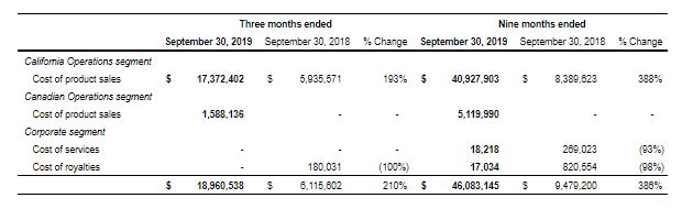 The following are the major financial highlights of Origin House’s operating results for the three months ended September 30, 2019, compared to the three months ended September 30, 2018: