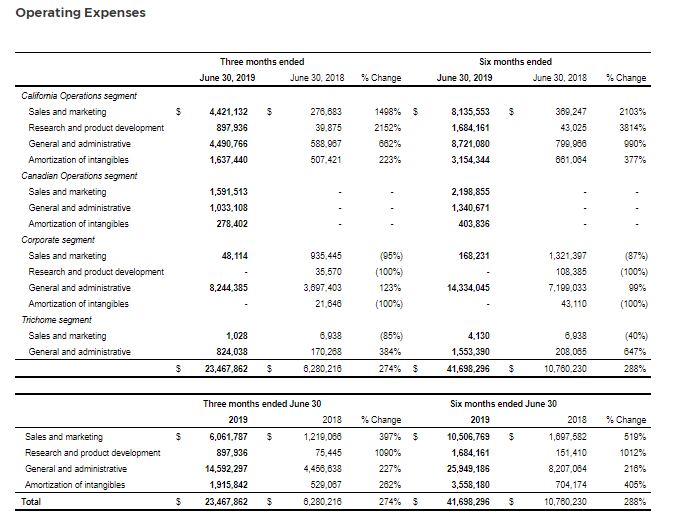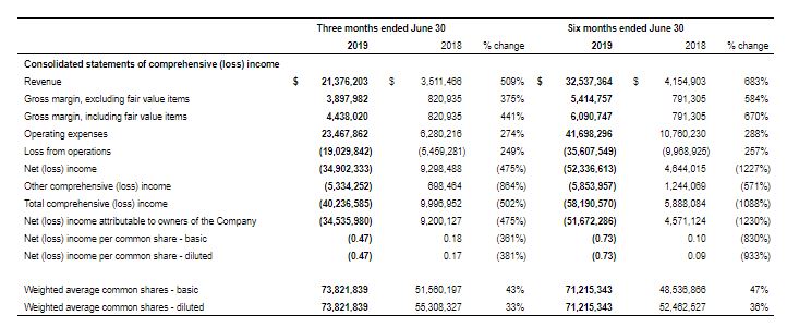 The following are financial highlights of Origin House’s operating results for the three months ended June 30, 2019, compared to the three months ended June 30, 2018: