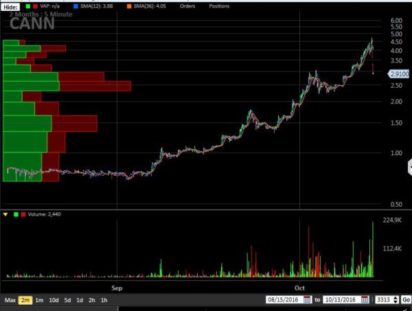 Cannabis stocks have been on quite the tear, with the index almost doubling from the levels near the end of August as traders gravitate to the sector in front of several state legalization initiatives next month. One of the big movers has been General Cannabis (OTC: CANN), which was formerly Advanced Cannabis Solutions. The company has several divisions, the largest of which provides security solutions in Colorado.