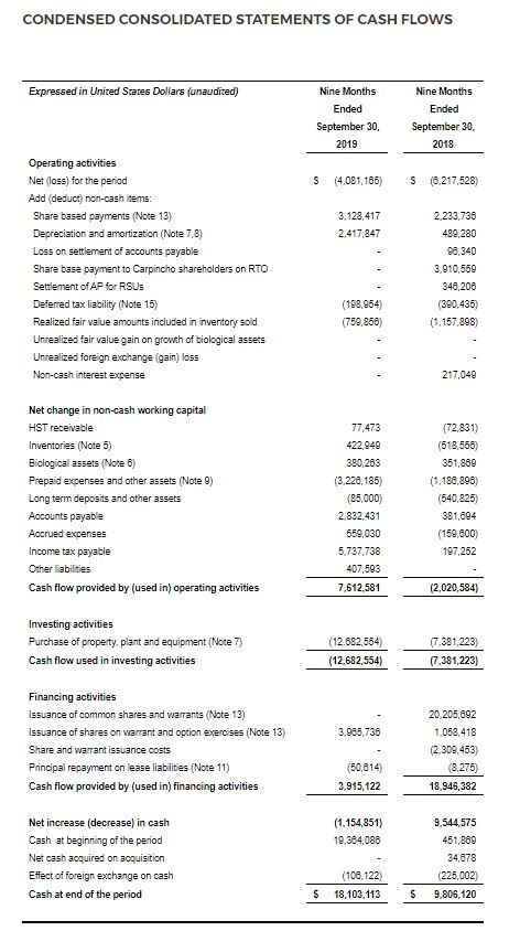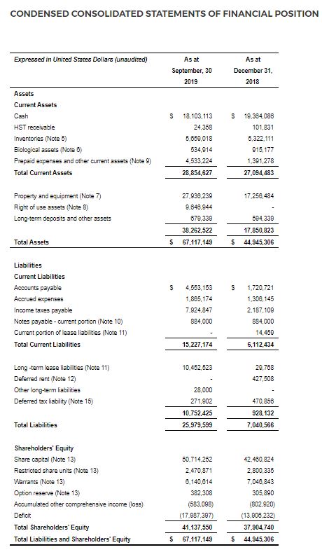 As at the date of this report, the Company had 81,517,869 common shares and 55,232,940 class A convertible, restricted voting shares issued and outstanding for a total of 136,750,809 shares outstanding. There were 753,508 options issued and outstanding of which 445,835 have fully vested. There were 15,380,713 warrants outstanding and 4,382,409 RSU’s outstanding of which nil RSUs had fully vested as at the date of this report.