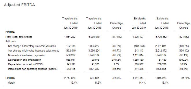 - Gross profit before biological adjustments was $9.7 million or 58.7% as compared $2.2 million or 50.8%, an increase of 333%