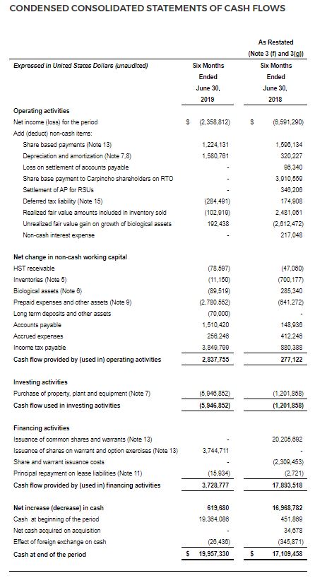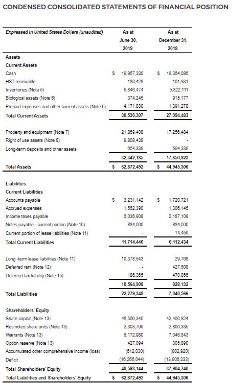 As at the date of this report, the Company had 81,220,432 common shares and 55,232,940 class A convertible, restricted voting shares issued and outstanding for a total of 136,453,372 shares outstanding. There were 653,507 options issued and outstanding of which 176,842 have fully vested. There were 16,103,615 warrants outstanding and 4,738,769 RSU’s outstanding of which nil RSUs had fully vested as at the date of this report.