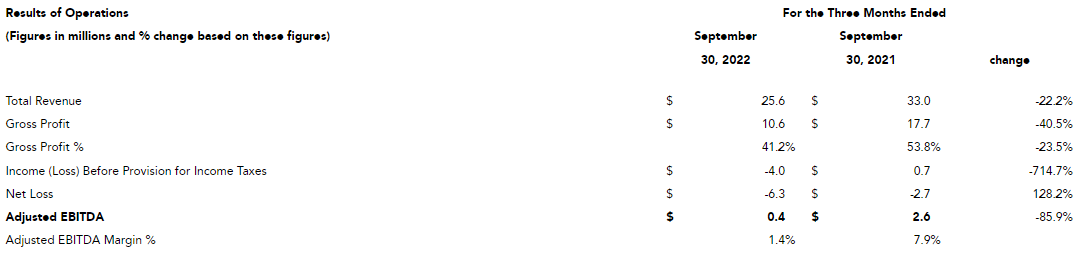 - Q3 2022 Adjusted EBITDA[1] of $0.4 million