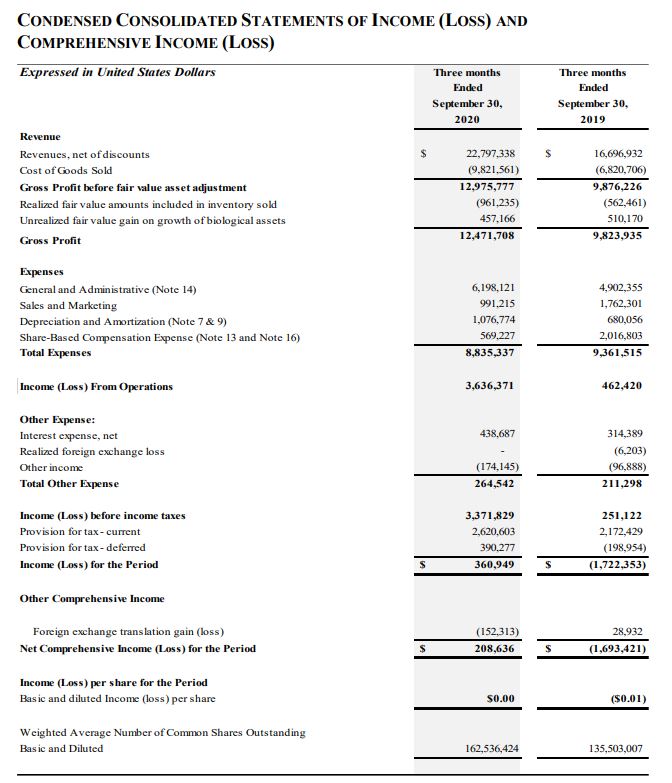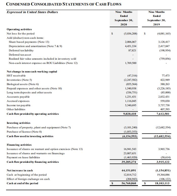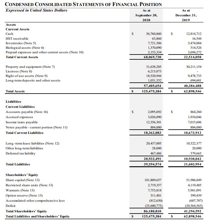 As of November 24, 2020, the Company had 121,987,683 common shares and 55,232,940 class A convertible, restricted voting shares issued and outstanding for a total of 177,220,623 shares outstanding. There were 333,840 options issued and outstanding of which all have fully vested. There were 11,743,904 warrants outstanding and 1,764,250 RSU’s outstanding of which nil RSUs had fully vested as at the date of this MD&A.