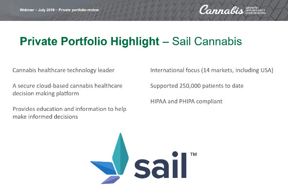 TORONTO, July 11, 2018 /CNW/ – Cannabis Growth Opportunity Corporation (CSE: CGOC) today announced an investment in Sail Cannabis (Sail), a secure cloud-based cannabis healthcare decision making platform serving clinicians and patients. The deal demonstrates CGOC’s approach to leveraging its early mover advantage to access investments in high growth global companies.