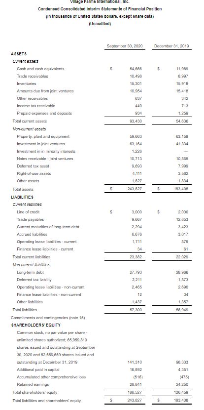 This press release is intended to be read in conjunction with the Company’s Consolidated Financial Statements (“Financial Statements”) and Management’s Discussion & Analysis (“MD&A”) for the three and nine month periods ended September 30, 2020 in the Company Form 10-Q, which will be filed on (www.sec.gov/edgar.shtml) and SEDAR (www.sedar.com) and will be available at www.villagefarms.com.