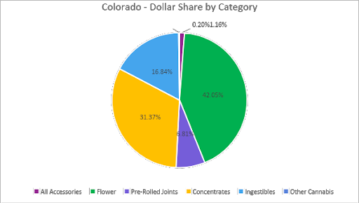 Flower sales reached $25.2 million in December 2019, contributing 43 percent towards overall sales revenue. Flower sales decreased about one percent from the trailing month and have increased by 17 percent compared to December 2018. For calendar year 2019, the $291.9 million in flower sales were a 20 percent increase from the prior year.